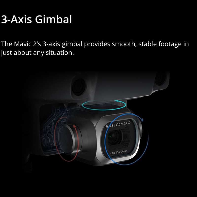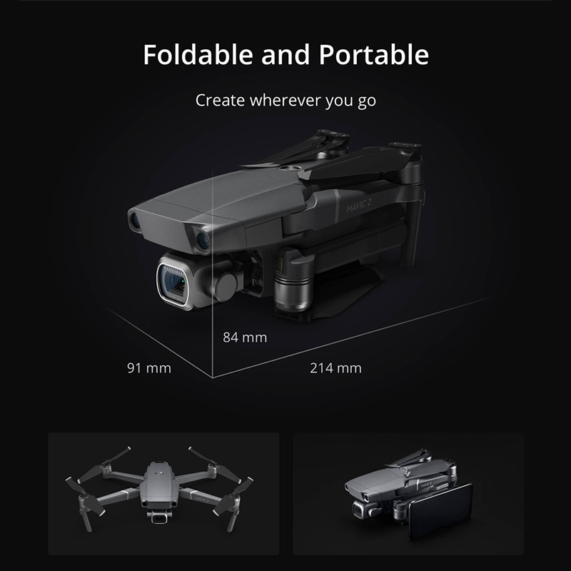 Ambas as câmeras Mavic 2 empregam a mais recente tecnologia de gimbal de 3 eixos da DJI, 6 garantindo filmagens suaves e estáveis em praticamente qualquer situação. Design dobrável e portátil, criar